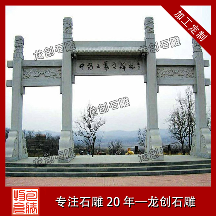 2、現(xiàn)代石雕牌坊要注意和實(shí)地環(huán)境的結(jié)合。現(xiàn)代化的石雕牌坊建筑可以是在休閑區(qū)域,也可以是在商業(yè)廣場(chǎng),還可以在景區(qū)內(nèi)建造,常見的就是在仿古街的入口處修建石雕牌坊,既能夠體現(xiàn)古色韻味又能夠吸引游人的關(guān)注。如村莊牌坊的修建,就要和村莊的風(fēng)俗文化相結(jié)合,只有這樣才能和當(dāng)?shù)丨h(huán)境文化融為一體。無(wú)論是在哪里進(jìn)行建造石雕牌坊,一定好和當(dāng)?shù)氐沫h(huán)境進(jìn)行有機(jī)的結(jié)合,這樣才能讓建筑和環(huán)境融為一體,才能讓建筑為周圍的景色帶來(lái)亮點(diǎn)。