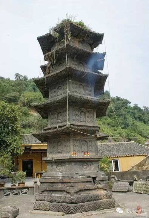 石塔位于浙江省溫州瑞安市隆山鄉(xiāng)周湖村萬松山麓。原名千佛塔,建于北宋熙寧元年到四年(1068~1071)。仿木構(gòu)樓閣式,實(shí)心,為葉臘石砌造,平面呈六邊形。原高7層,崐后頂層坍落,現(xiàn)存6層,高7.8米。塔身各層寬度相等,未逐層收縮。除已坍落外,現(xiàn)存大小佛像472尊,均為跏趺坐式。塔身各層各面和部分倚住、木兼柱,以及坐佛須彌座上,刻有宋代題記68條。