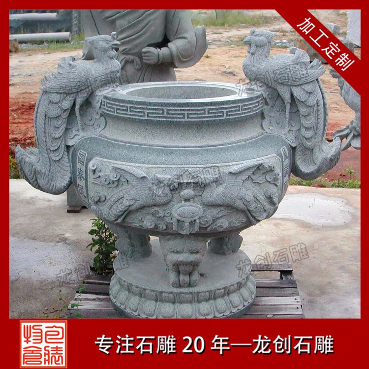 大型的石雕香爐,并不是一整塊石頭制作出來的,而是類似與石燈、石塔一樣,是由多個(gè)不同的石雕香爐部件,共同組合堆疊起來的。相比石燈、石塔不同的是,石雕香爐的主體部分是必須要掏空的。在保證石雕香爐主體運(yùn)輸,并且能夠正常使用的情況下,其香爐挖得越深越好。