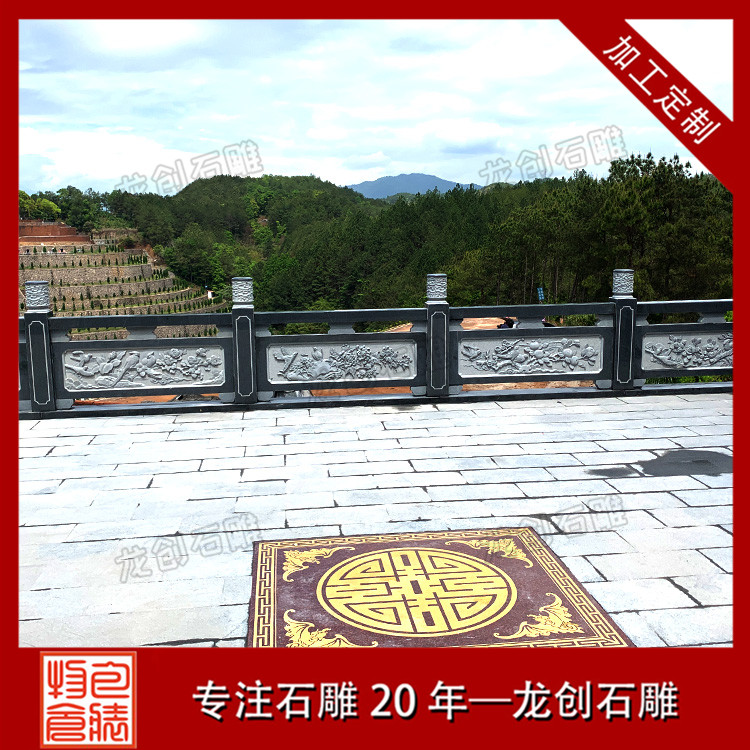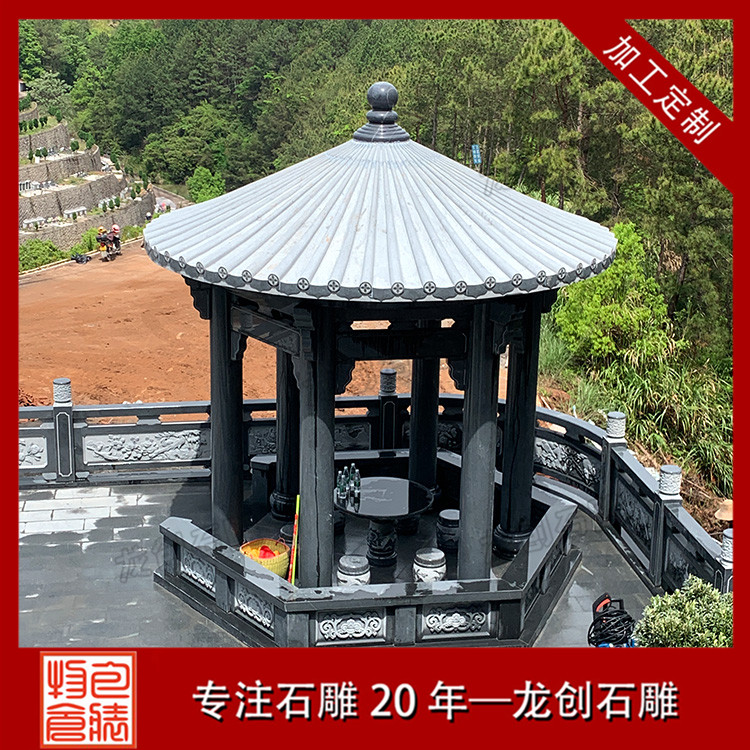 此陵園石雕涼亭采用的是青石雕刻的單層石亭子,石雕欄桿也是采用青石材質(zhì)的石欄桿,欄板上面雕刻了花草圖案,看上去特別的精美,墓碑周圍的石材浮雕是二十四孝圖案,其他地方的石材浮雕圖案是花草鳥獸,整個陵園通過這些石雕制品的裝飾,顯得很有檔次。
