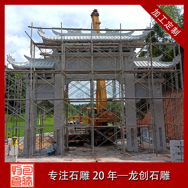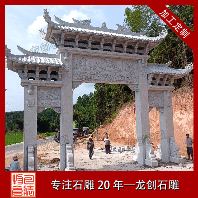 在很多的農(nóng)村的村口都會(huì)有石雕牌坊,也有人稱(chēng)石門(mén)樓,這是一種非常常見(jiàn)的建筑,村口石雕牌坊不僅僅是一個(gè)村子文化的象征,同時(shí)也是村子非常獨(dú)特的景觀,在不同的農(nóng)村,石雕牌坊會(huì)有不同的設(shè)計(jì),因此村口石雕牌坊樣式也具有多樣性。以下是村口三門(mén)石雕牌坊案例展示: