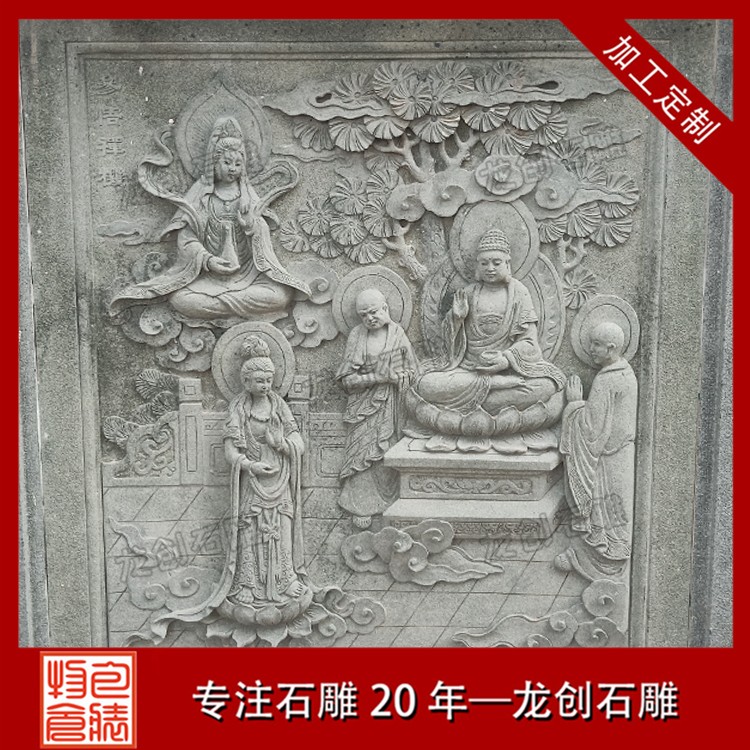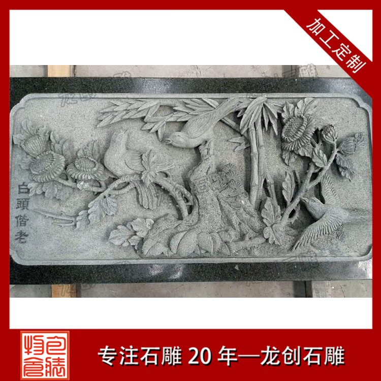 石雕壁畫(huà)內(nèi)容豐富多樣,可以包括花草鳥(niǎo)獸、人物佛像、龍等圖案,通過(guò)浮雕、暗刻等雕刻工藝制作出來(lái),使墻面變得美觀靈動(dòng)且富有藝術(shù)感。這些石雕壁畫(huà)不僅可以提升視覺(jué)感受,還可以表現(xiàn)出清晰的層次感效果,讓整個(gè)空間都具有藝術(shù)美感。