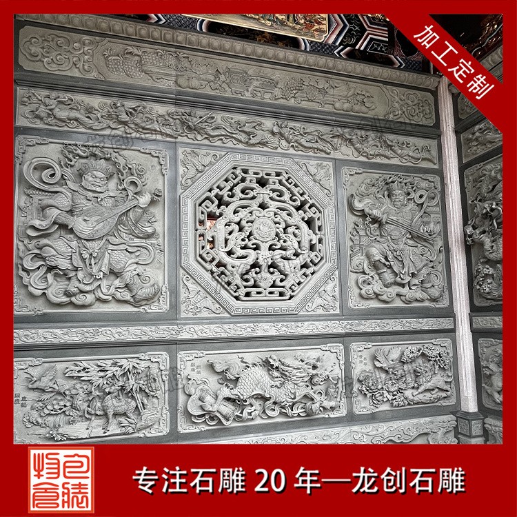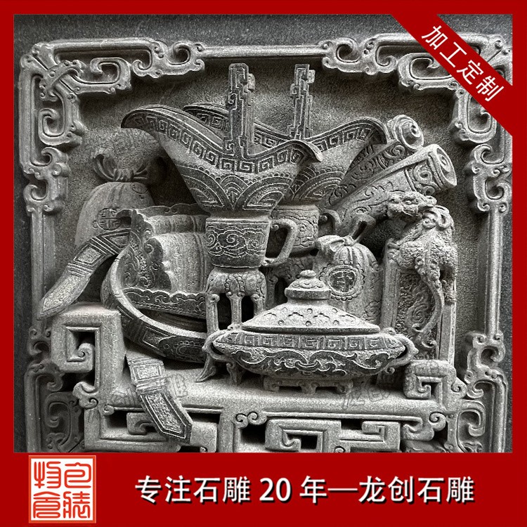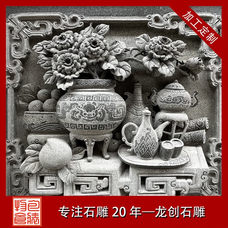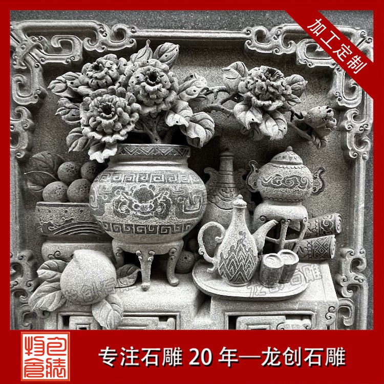 在工藝技法上,這類浮雕注重平面構(gòu)圖向立體空間的轉(zhuǎn)換。采用寫實與寫意相結(jié)合的表現(xiàn)手法,花朵枝葉的形態(tài)力求準(zhǔn)確,而整體布局則講究虛實相生。雕刻時通常分三個層次處理:遠景層淺刻勾勒,中景層適度凸起,近景層重點刻畫。特別是禽鳥的喙眼、花瓣的翻卷、葉片的脈絡(luò)等關(guān)鍵部位,通過精細的刀工呈現(xiàn)出生動的細節(jié)質(zhì)感,使堅硬的青石呈現(xiàn)出柔美的自然氣息。