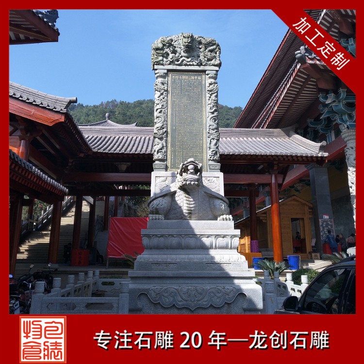 功德碑,是銘記善舉、傳承德行、致敬奉獻的精神豐碑,廣泛應用于寺院修繕、公益項目、鄉(xiāng)賢頌德、宗族傳承等場景。我們的大型花崗巖功德碑,采用“主碑+基座+碑帽”的經(jīng)典三段式結(jié)構(gòu),可根據(jù)需求定制3-5米高的大型規(guī)格,搭配對稱副碑設計,增強視覺莊重感,既適合鐫刻捐贈名單、功德事跡,也可呈現(xiàn)公益成果、先賢事跡,讓每一份善舉都被時光銘記。