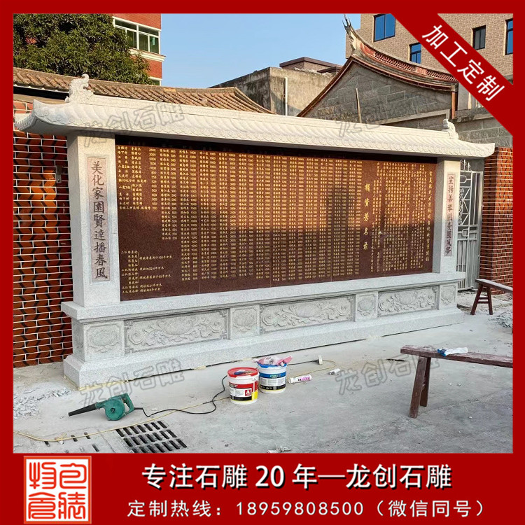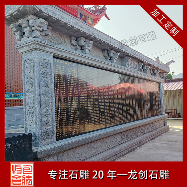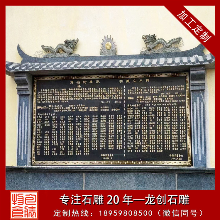 碑體雕刻融合傳統(tǒng)技藝與現(xiàn)代數(shù)控工藝,資深雕刻師精準把控每一刀細節(jié),可實現(xiàn)浮雕、陰刻、圓雕等多種工藝,碑周可雕刻祥云、瑞獸、松竹梅等吉祥紋飾,既提升碑體的文化質(zhì)感,又寓意福澤綿長、功德永存。碑文排版遵循嚴謹規(guī)范,字體選用楷書、隸書等莊重字體,搭配描金、涂黑工藝,讓字跡清晰醒目、耐磨不褪色,每一筆都飽含敬意,每一段文字都直擊人心,讓功德精神跨越歲月、代代相傳。