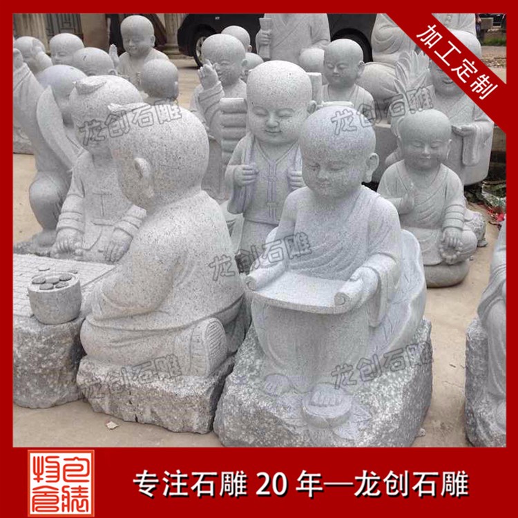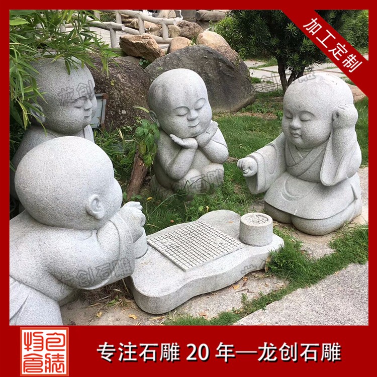 石雕精品小沙彌就是用優(yōu)質(zhì)石材雕刻制作的小和尚造型,一般都是10歲以下的孩童雕塑。由于小孩的天真爛漫,各種各樣有趣的造型都會(huì)做出來,比如下棋的小沙彌,睡姿的小沙彌、嬉戲的以及功夫小沙彌,打掃衛(wèi)生的等等,也有一些修行的小沙彌造型,比如參禪打坐的造型,敲木魚的造型。石雕小沙彌的百態(tài)千姿是寺廟諸佛菩薩雕塑里面較多的一種,也是讓信眾們發(fā)自內(nèi)心的喜愛和尊敬的一種佛教弟子塑像。