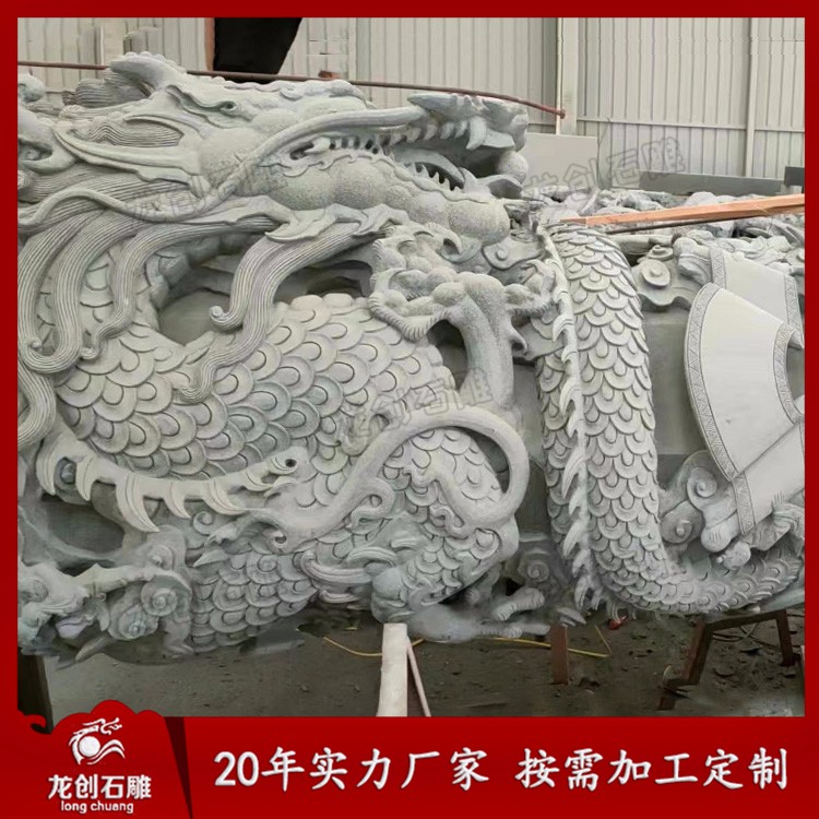 石雕龍柱又叫石雕龍抱柱、盤(pán)龍柱、滾龍柱、蟠龍柱,指在石頭上雕刻龍紋的具有指示作用的柱子。龍柱全身雕刻龍紋,一般柱子上下雕刻兩條龍,龍浮雕一般雕刻深度在3-5cm,也有雕刻7-10cm的,深度雕刻的越深龍紋越明顯,龍的神圣形象也就越突出,整個(gè)柱子也就越具有莊嚴(yán)神圣感。