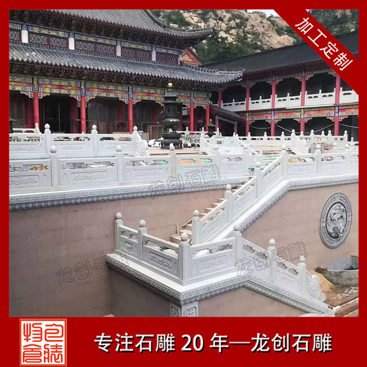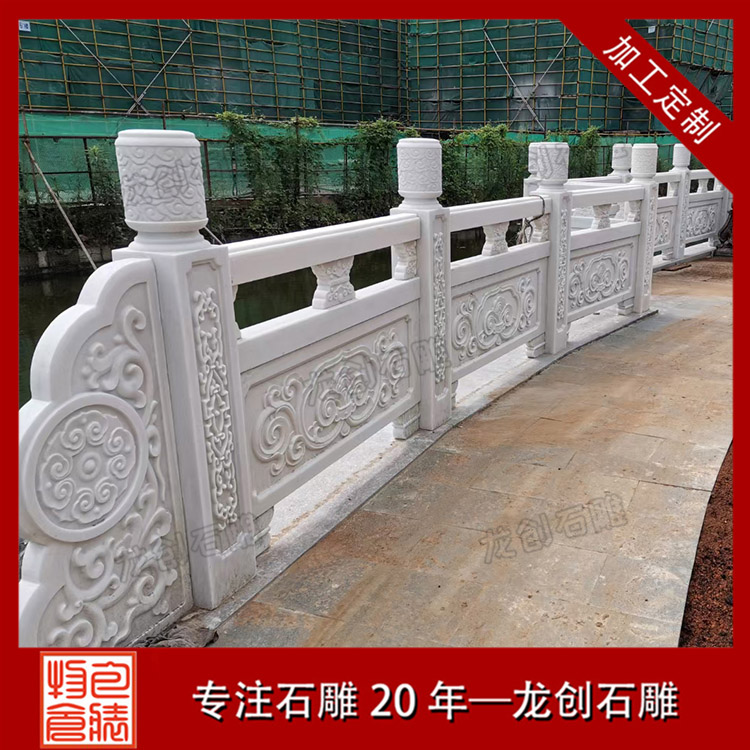 漢白玉石材欄桿作為建筑文化的載體,體現(xiàn)了中國古代建筑造型藝術和雕刻藝術的完美結合。漢白玉欄桿不僅可以裝飾美化我們的環(huán)境,還可以提升我們的品味,展示中國古代的民俗民風。