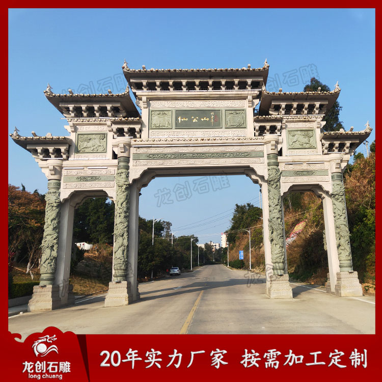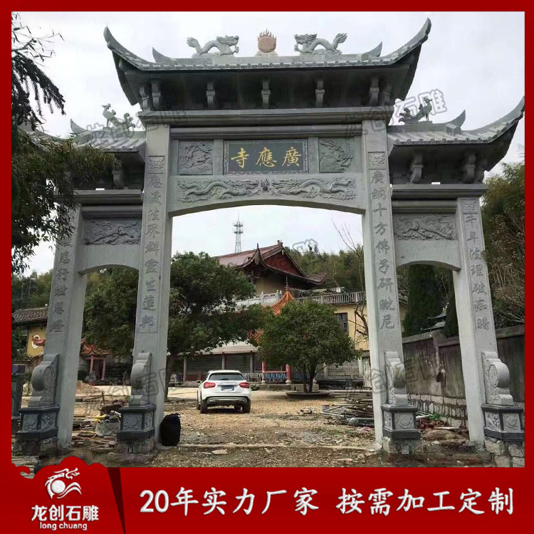 寺廟青石牌坊樣式圖片有一門、三門、五門等,其中有一門一樓、三門三樓、三門五樓等,這些石牌坊是常用的幾種款式,價(jià)格也不貴,是消費(fèi)者較為喜歡的幾種樣式的石牌坊。不同大小的石牌坊價(jià)格也不同,石牌坊樣式和規(guī)格大小不同,石牌坊價(jià)格也不一樣。不同石材,價(jià)格也不同。