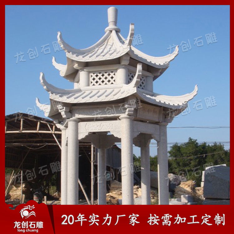 石涼亭也叫石亭子,是提供人們在園林或者是景區(qū)中觀賞風(fēng)景與休憩的場所,加工石涼亭在選擇石材時,有的石材顏色比較單一可以通過雕刻的方式來彌補顏色帶來的不足,或者是通過雕刻的圖案來代表人們美好的一種祝愿。