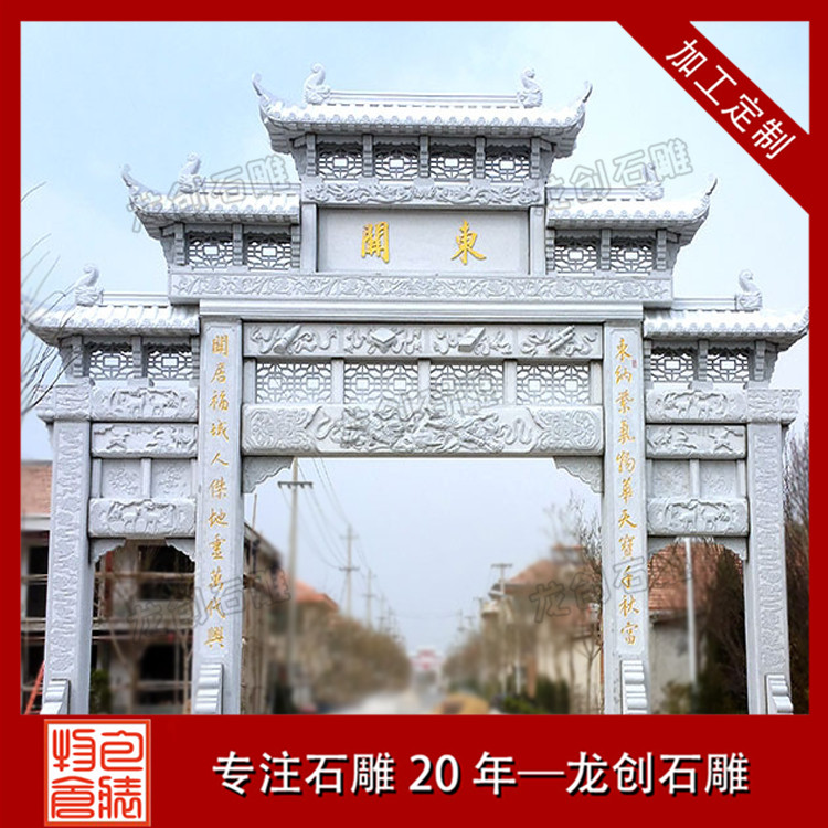 村頭石牌樓作為提高鄉(xiāng)村品牌形象的關(guān)鍵工程建筑,鄉(xiāng)村安裝的村子石牌樓村牌樓通常全是以簡(jiǎn)易大氣的主導(dǎo),例如某些這門(mén)1樓或3樓或三門(mén)3樓式的牌樓,由于這種牌樓的工程造價(jià)成本費(fèi)也不高,適合鄉(xiāng)村石牌樓的手工雕刻安裝,這都是許多鄉(xiāng)村能夠接納的緣故。手工雕刻精致的村頭石牌樓,從側(cè)邊體現(xiàn)出了,大家的人生目標(biāo),對(duì)家中祈禱安全、期盼人生道路榮華富貴、祈禱身體健康的吉祥如意意識(shí)。
