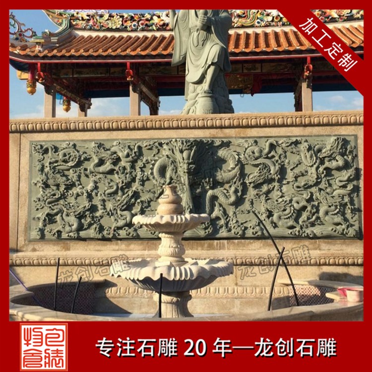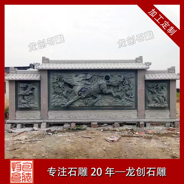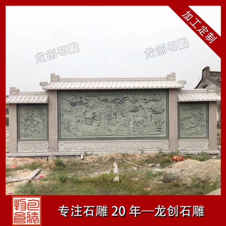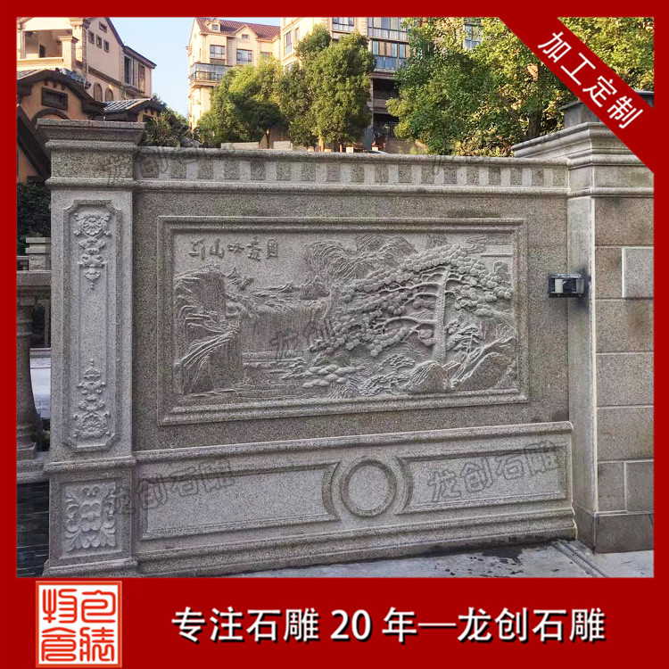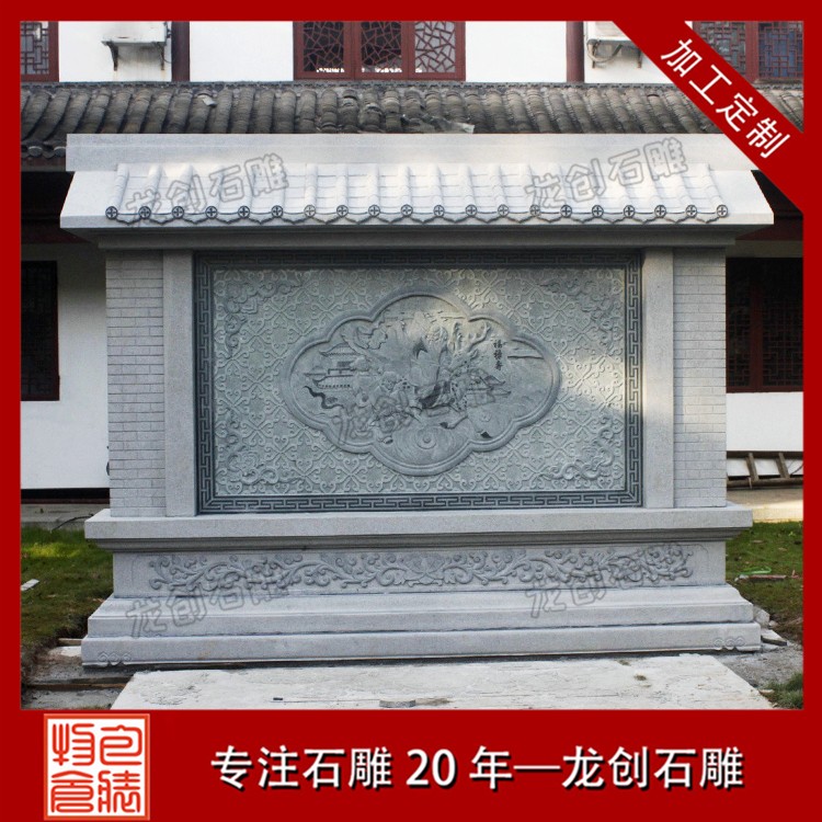 石材浮雕照壁就是用石材雕刻的一種墻面,也稱石雕影墻、石雕照墻,是古代寺廟、宮殿、官府衙門(mén)和深宅大院前的一種建筑,即門(mén)外正對(duì)大門(mén)以作屏障作用的墻壁。石雕照墻定制,選惠安龍創(chuàng)石雕。