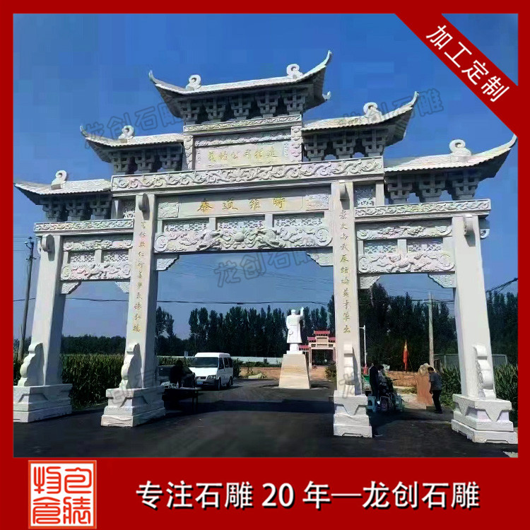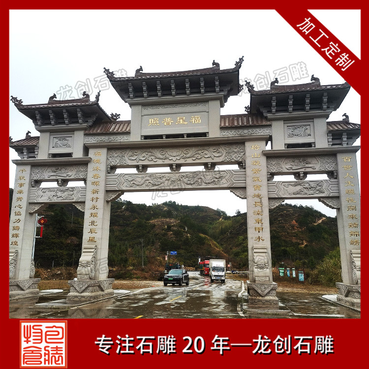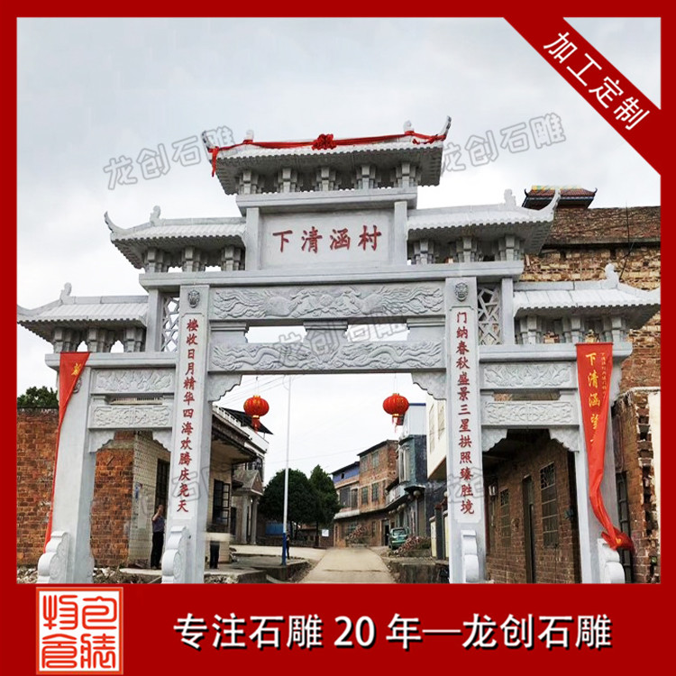 石雕牌坊是我國傳統(tǒng)古建筑的一部分,村莊石雕牌坊也稱村口石雕牌坊、農村石雕牌坊,一般是建在村莊的入口處,村莊石雕牌坊是一種仿古建筑,古樸大方,具有很高的歷史文化價值和觀賞價值。