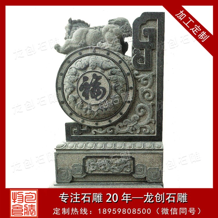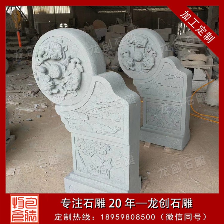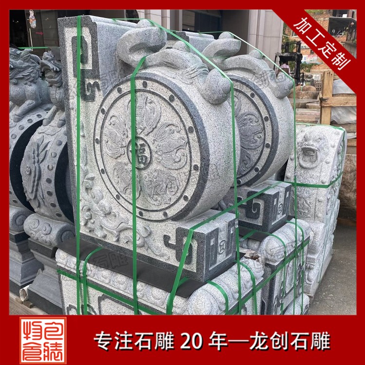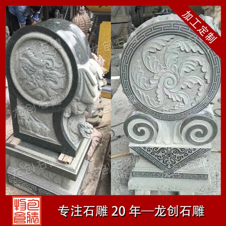 3.浮雕與線雕結(jié)合:在抱鼓石的雕刻過程中,浮雕和線雕技藝常被結(jié)合使用。浮雕通過使形象從背景中凸出來,增強(qiáng)畫面的立體感和空間感。在抱鼓石的兩側(cè),常采用浮雕技藝刻畫各種圖案和紋飾,如角蓮、麒麟臥松等。而線雕則主要通過刻線來展現(xiàn)細(xì)節(jié)和紋理,使石雕更加細(xì)膩和美觀。在細(xì)加工階段,雕刻師傅會根據(jù)設(shè)計(jì)稿和石材的特性,靈活運(yùn)用這兩種技藝,使抱鼓石既具有藝術(shù)美感,又符合實(shí)用要求。