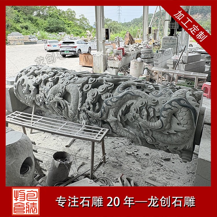 雕刻技法:局部磨光面+荔枝面+機(jī)切面,龍身浮 12-15公分(龍身分三段)