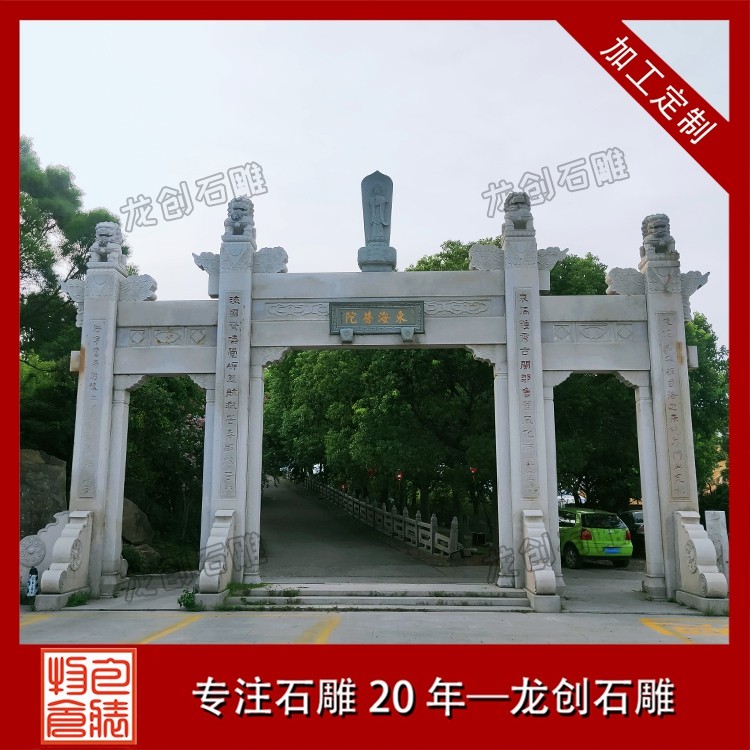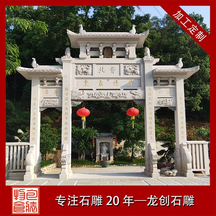 在景區(qū),往往首先映入眼簾的便是一座氣派的石牌坊。在這里,石牌坊扮演的是 “門(mén)面擔(dān)當(dāng)” 的角色 。它的首要功能是標(biāo)識(shí)和引導(dǎo)。牌坊上的匾額題字,點(diǎn)明了景區(qū)的名字和意境,告訴游人“由此進(jìn)入,別有洞天”。更重要的是,它是風(fēng)景的序言。在設(shè)計(jì)上,景區(qū)牌坊的雕刻主題會(huì)與內(nèi)部景致相呼應(yīng)。