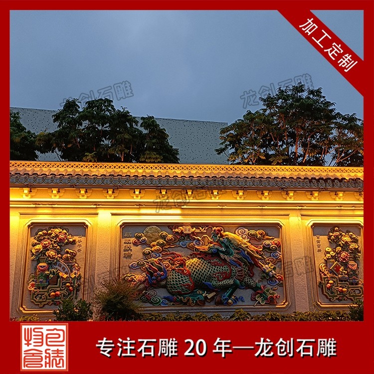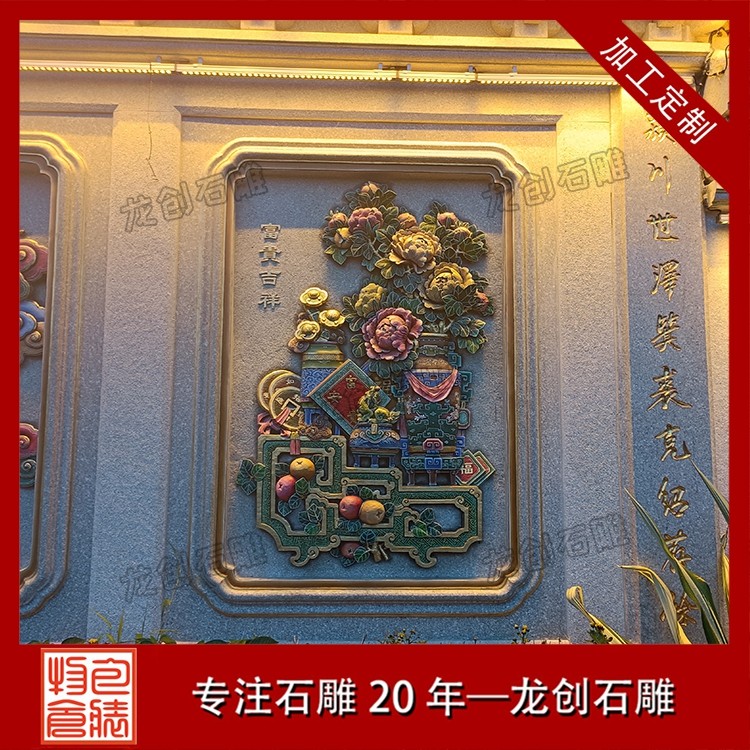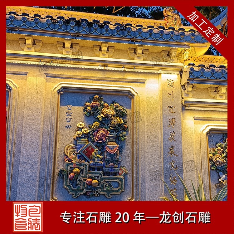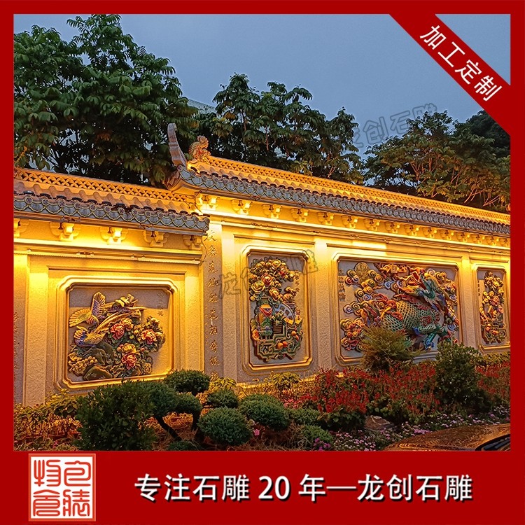 其二,意境含蓄內(nèi)斂,彰顯中式人文情懷。中式庭院講究“藏而不露”,石雕照壁浮雕恰好契合這一美學(xué)理念,既巧妙遮擋院內(nèi)景致,避免“開(kāi)門(mén)見(jiàn)山”的直白,又以浮雕紋樣傳遞美好期許——龍鳳呈祥彰顯尊貴,松鶴延年寄托福壽,鹿竹同春寓意平安,山水花鳥(niǎo)展現(xiàn)自然之美,讓冰冷的石材承載起溫暖的文化內(nèi)涵與家族期盼。