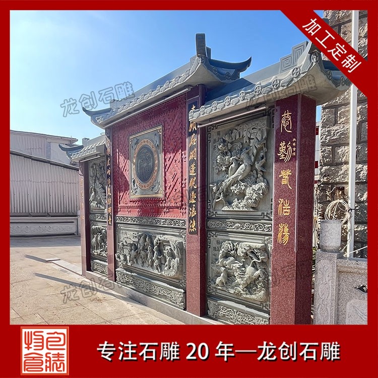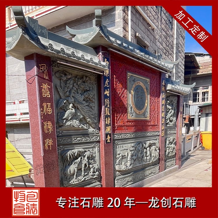 其一,視覺(jué)層次感突出,打造庭院的驚艷。作為庭院大門(mén)口的視覺(jué)焦點(diǎn),石雕照壁浮雕以立體雕刻工藝打破平面墻面的單調(diào),線條流暢的浮雕紋樣與天然石材的質(zhì)感相得益彰,無(wú)論是簡(jiǎn)約大氣的線條設(shè)計(jì),還是繁復(fù)精美的吉祥圖案,都能瞬間提升庭院大門(mén)口的整體檔次,讓到訪者直觀感受到主人的審美格調(diào)與家族底蘊(yùn)。