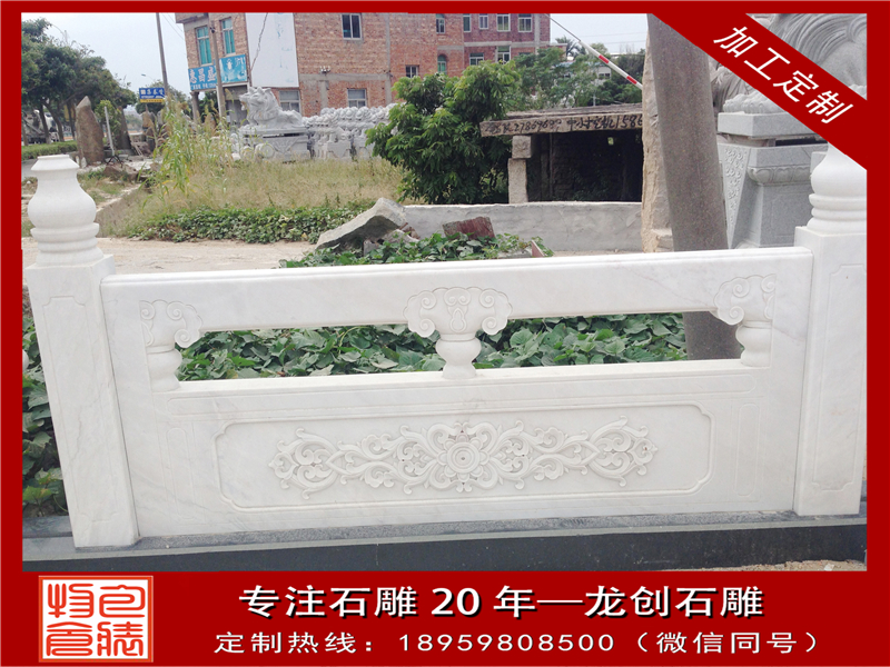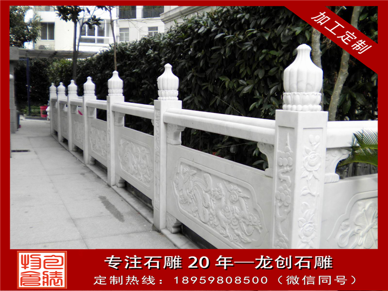 漢白玉欄桿價格根據(jù)欄板所透圖案的不同價格也不等,一般的規(guī)則圖形價格比較便宜,特殊造型和圖案的稍微貴上一點;浮雕根據(jù)所要求的深度和圖案的不同價格不等,雕刻的圖案越深,人工的成本就越高,花鳥的圖案一般相對便宜些,動物人物的相對來說貴一些。總之就是雕刻的越復雜,那么價格就越貴。