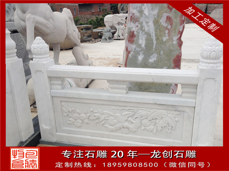 漢白玉石欄桿的制造安裝工藝是先人留下的寶貴財富,許多工藝的口訣都是工匠在操作中形成了自己的習(xí)氣,并一代代口傳親授,薪火相傳。漢白玉石欄桿具有很強(qiáng)的表現(xiàn)力,可雕刻出各種古典式樣的圖案。有著時尚、漂亮、環(huán)保、抗老化、不變形的功能優(yōu)點(diǎn),可廣泛用于市政、水利、公園、交通橋梁等護(hù)欄工程。