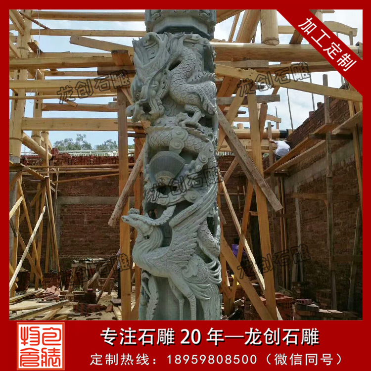 龍鳳浮雕石雕圓柱適用于宗教寺廟、園林古建、祠堂祖厝仿古建筑裝飾。