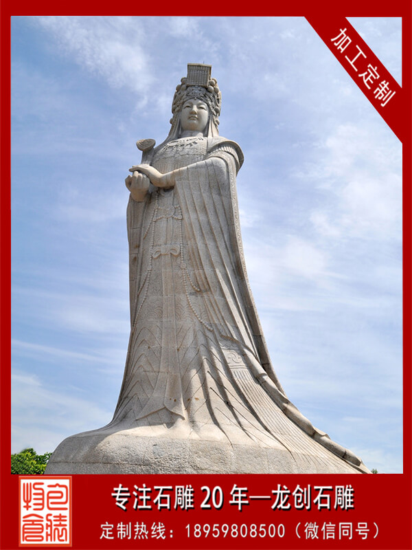 媽祖石雕,以中國東南沿海為中心的海神信仰,又稱天上圣母、天后、天后娘娘、天妃、天妃娘娘、湄洲娘媽等。這一信仰的主體據(jù)說是由真人真事演變而來的??疾鞁屪娴纳降弥?,這一信仰來自民間傳說。首先是傳說,然后是傳說的歷史化和神化,最后形成普遍的媽祖信仰。