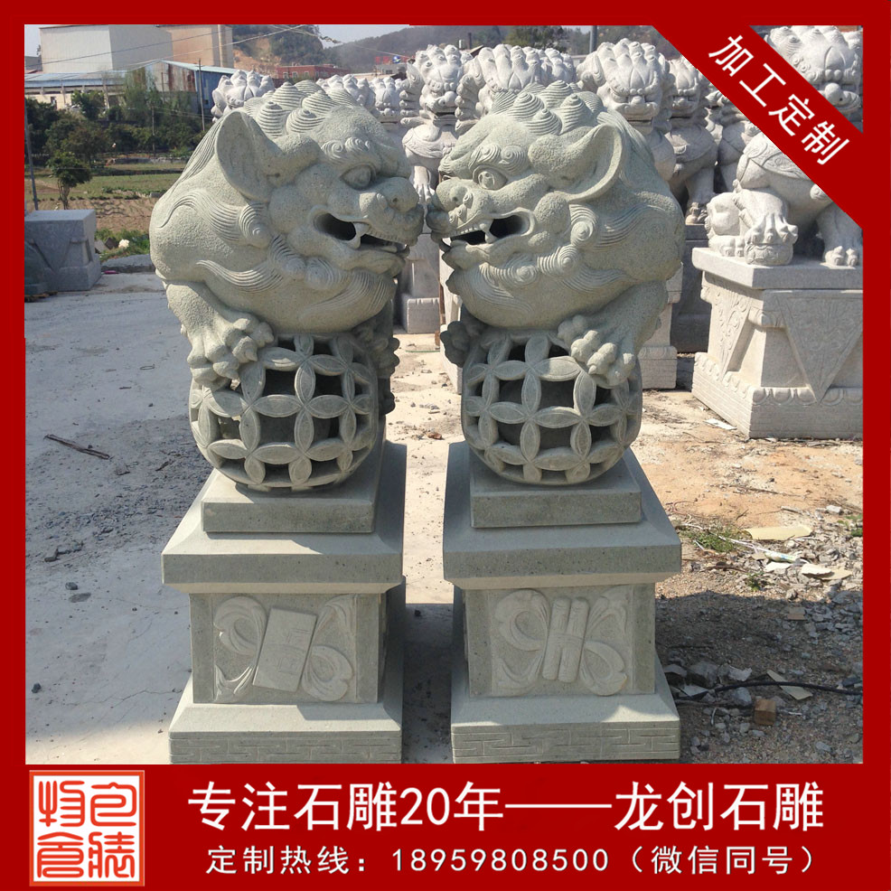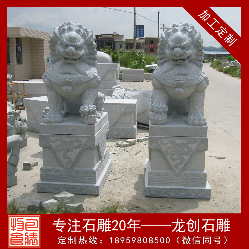 石獅子的造型一般尊嚴(yán)而又大氣,是皇jia守衛(wèi)門戶確?;蕦m安寧的瑞獸,因?yàn)楠{子是獸中zhi王,它體態(tài)壯碩雄健、威錳無(wú)比、氣勢(shì)非常。統(tǒng)治者認(rèn)為獅子不但可以避邪,還可帶來(lái)祥瑞之氣。石雕北京獅為雌雄一對(duì),獅頭飾鬃髦,頸懸響鈴,肌肉發(fā)達(dá),氣勢(shì)雄偉。雌獅前左腳下有一幼獅仰臥作嬉戲狀,雄獅前右腳撫踩一繡球。底座有繁縟精致的卷葉紋。石雕北京獅瑞獸一種,百獸zhi王,勇不可擋,威震四方,不但可以避邪,且可帶來(lái)祥瑞之氣,能解除多種形煞,亦加強(qiáng)官威或屋主之陽(yáng)氣,如果窗口見(jiàn)到不利之沖克,如沖煞、天斬煞等,可放一對(duì)石獅面向口可化煞,且有生權(quán)之意,適合官職人員擺放,古時(shí)衙門前就是擺放獅子鎮(zhèn)守。