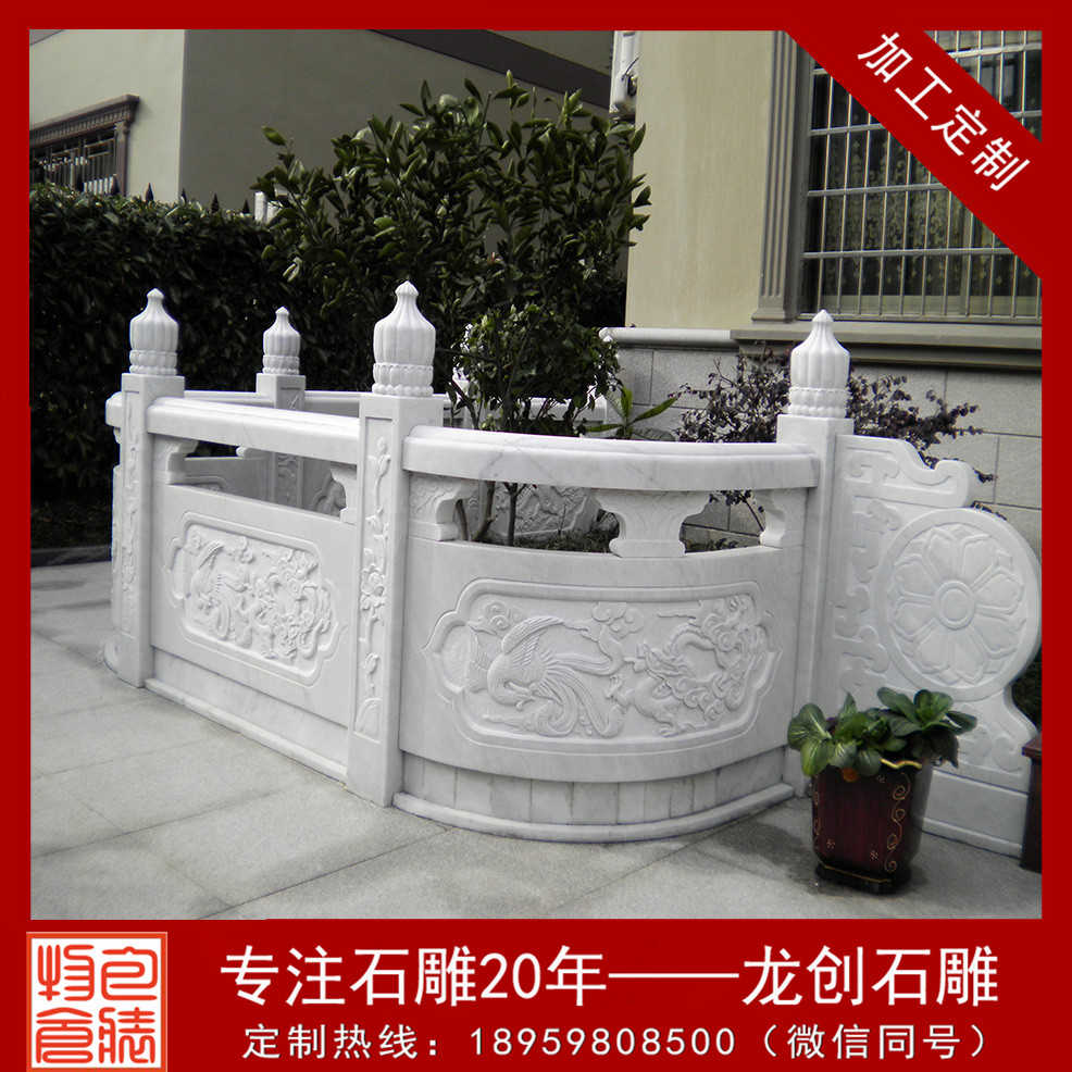 大理石欄桿的制造裝置工藝是祖先留下的寶貴財(cái)富,許多工藝的口訣都是工匠在操作中形成了自己的習(xí)慣,并一代代口傳親授,薪火相傳。大理石欄桿具有很強(qiáng)的表現(xiàn)力,可雕刻出各種古典式樣的圖畫(huà)。有著時(shí)尚、美觀、環(huán)保、抗老化、不變形的性能長(zhǎng)處,可廣泛用于市政、水利、公園、交通橋梁等護(hù)欄工程。