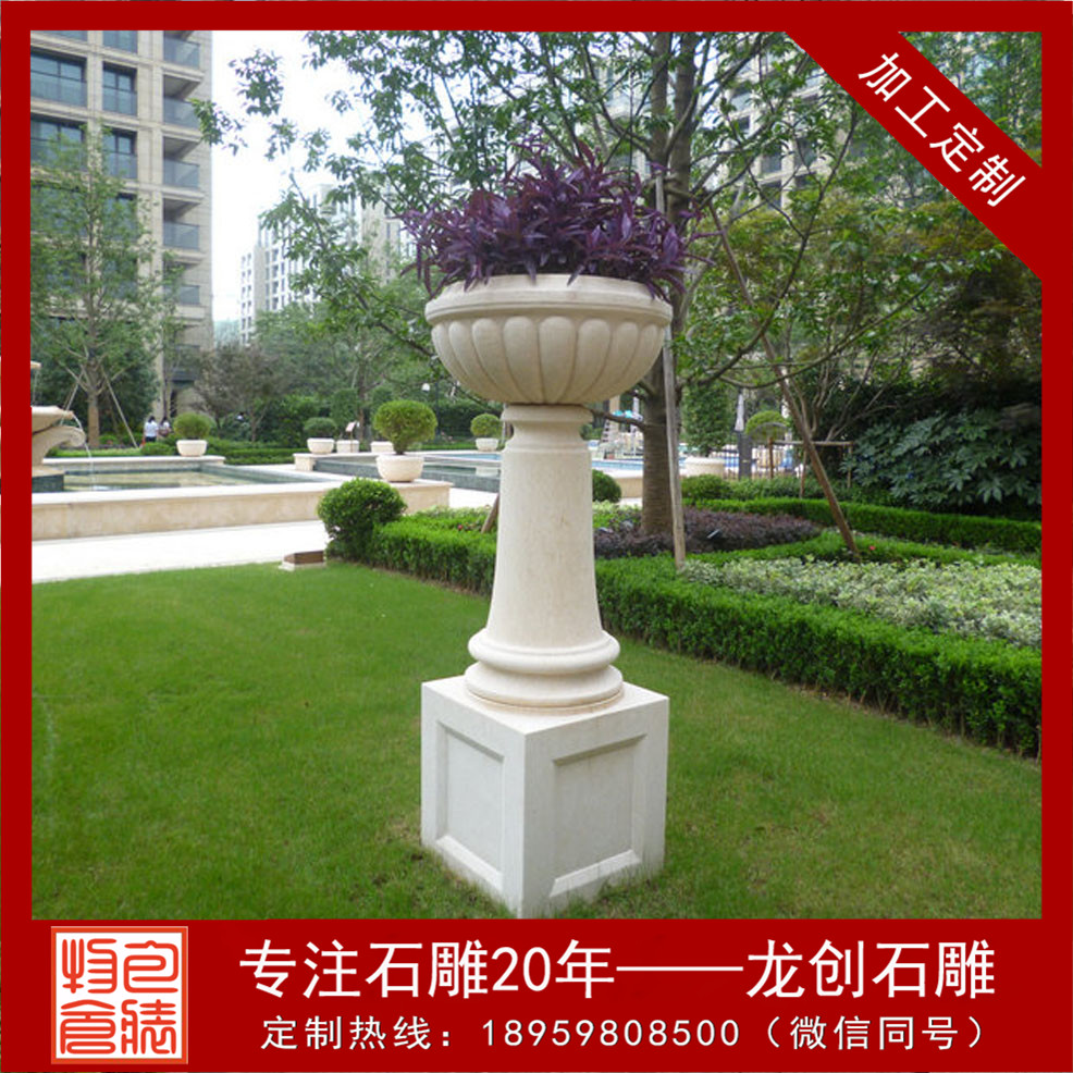 被精雕細(xì)琢而成的天然石雕花盆。形態(tài)逼真,許許如生。適用于小區(qū),廣場(chǎng),園林,酒店,學(xué)校,戶外園林景觀工程等場(chǎng)所。這些花缽靈活多樣,隨處可用,尤其對(duì)于城鄉(xiāng)建筑比較密集和其他一些難于綠化地區(qū)的美化,有著特殊的意義。美化環(huán)境時(shí),可根據(jù)缽、盆樣式、大小的不同,進(jìn)行多種多樣的藝術(shù)組合。組合的形式可以是幾何式、自然式、混合式、集中布置、散置等,具體布局形式要由美化地點(diǎn)的具體情況決定。在較寬敞的地方,如廠前區(qū)、廣場(chǎng)、大型建筑門前、道路交叉口、停車場(chǎng)等處,小區(qū)石雕花盆可布置為樣式多變、五彩繽紛的小花壇,在商店、住宅的門前可隨機(jī)點(diǎn)綴一二。石雕噴泉花缽制作設(shè)計(jì)多種多樣,可以是圓形、半圓形、方形、多邊形等,立面可以分單層、多層等。設(shè)計(jì)的依據(jù)是要配合應(yīng)用地點(diǎn)的環(huán)境特點(diǎn)。