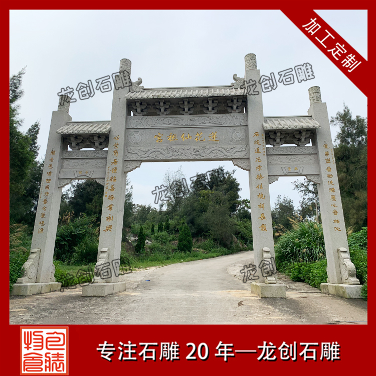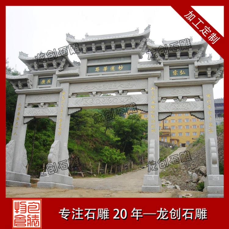 花崗巖石牌樓廠家龍創(chuàng)石雕生產(chǎn)的石牌樓古樸典雅、新穎美觀,無(wú)論人物或動(dòng)物都栩栩如生,成為提升形象、營(yíng)造古典文化的一大特色。我廠專(zhuān)業(yè)制作設(shè)計(jì)各種石牌樓,青石牌樓定制,在石雕行業(yè)中有著專(zhuān)業(yè)的技術(shù)團(tuán)隊(duì),可以為每一個(gè)地方設(shè)計(jì)出具有他們當(dāng)?shù)匚幕氖茦牵垊?chuàng)石雕全體員工熱誠(chéng)歡迎您前來(lái)參觀。